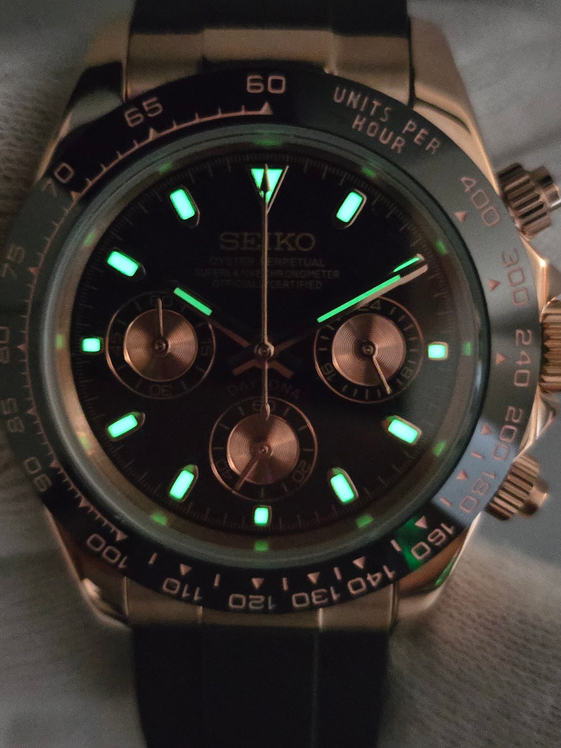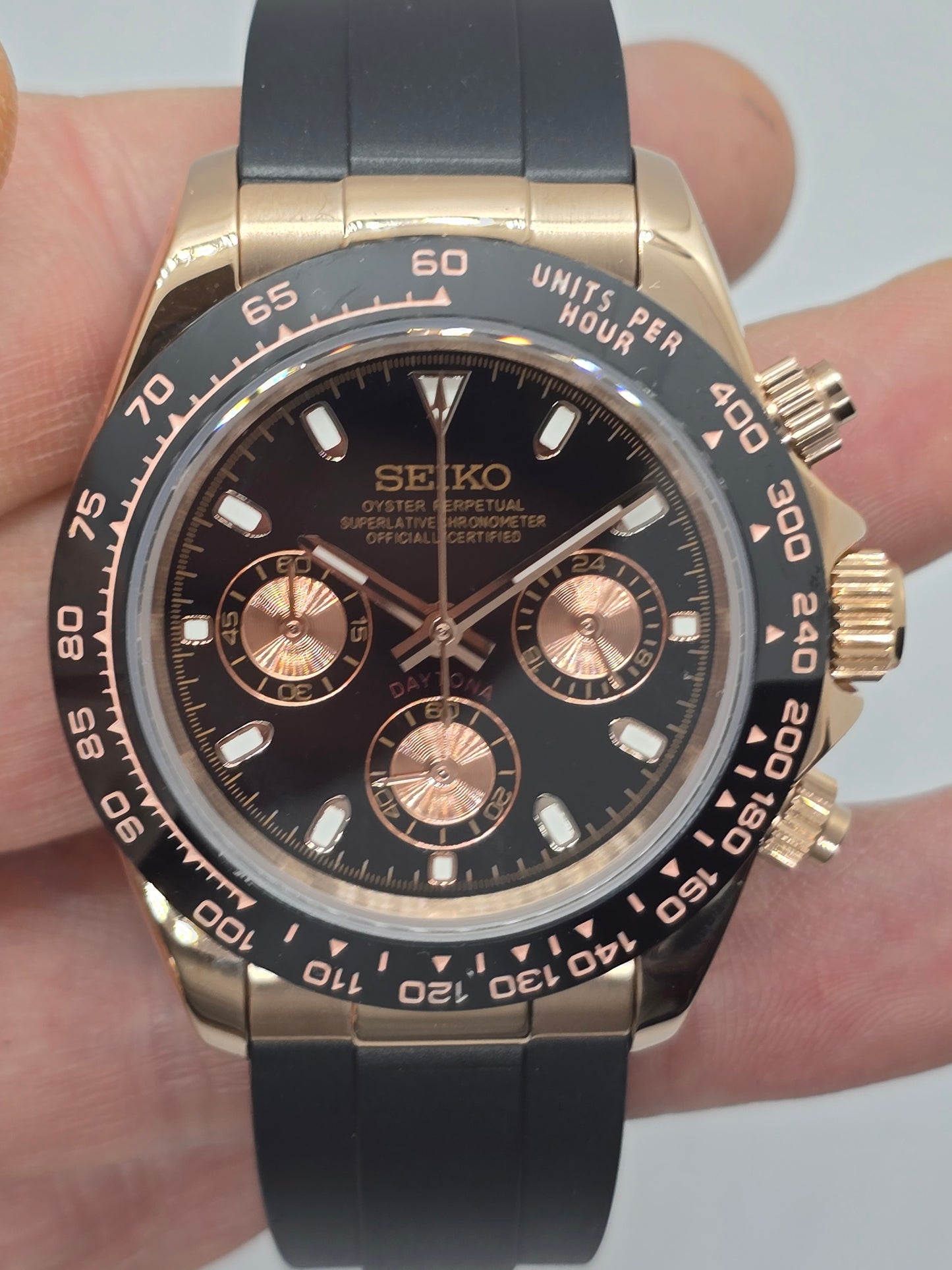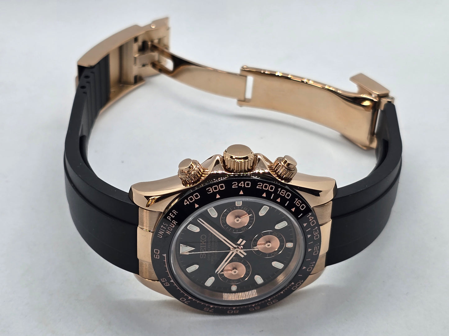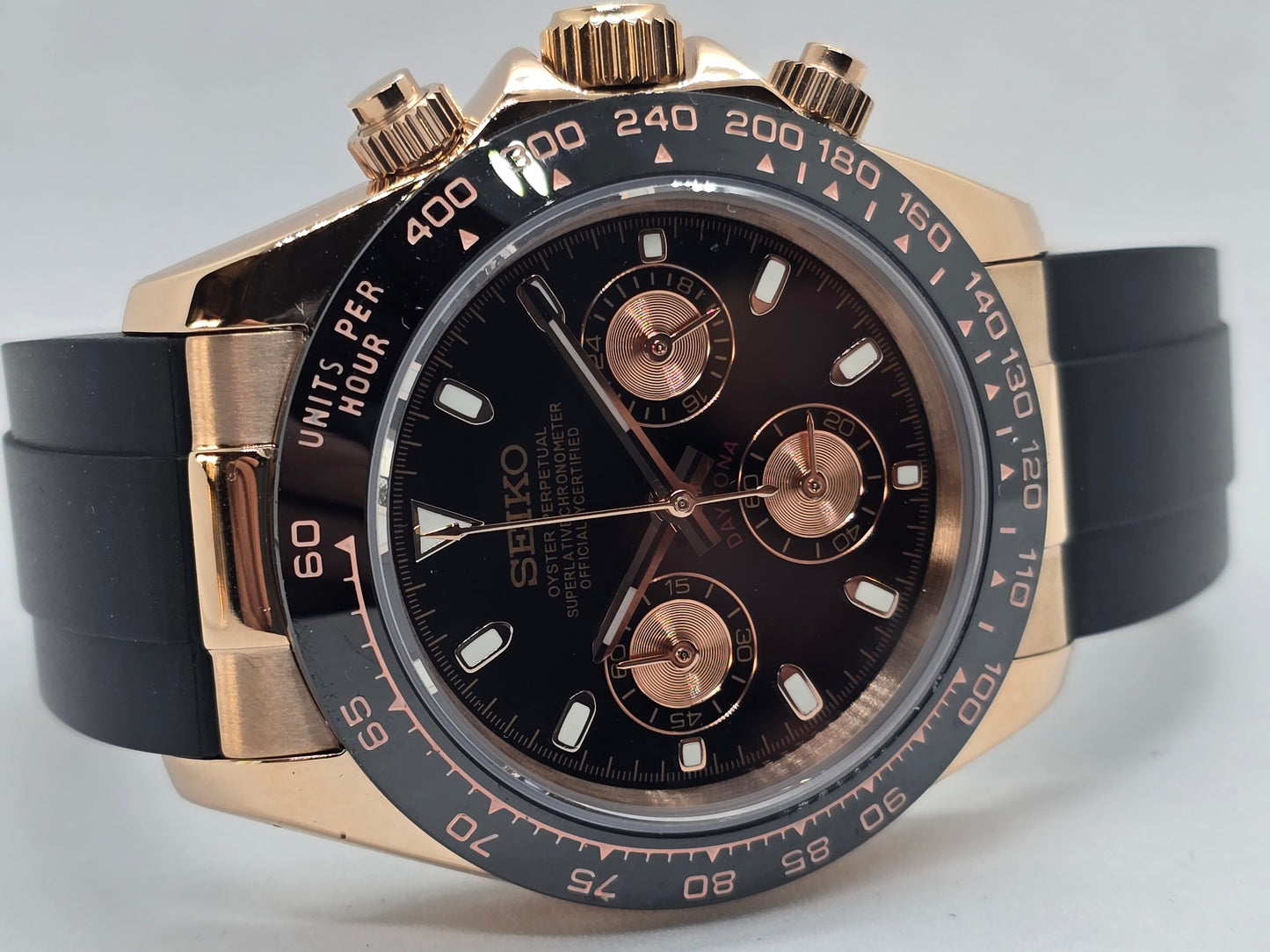 Seiko Mod Daytona cronografo oro rosa Vk63 quarzo 40 mm lunetta ceramica