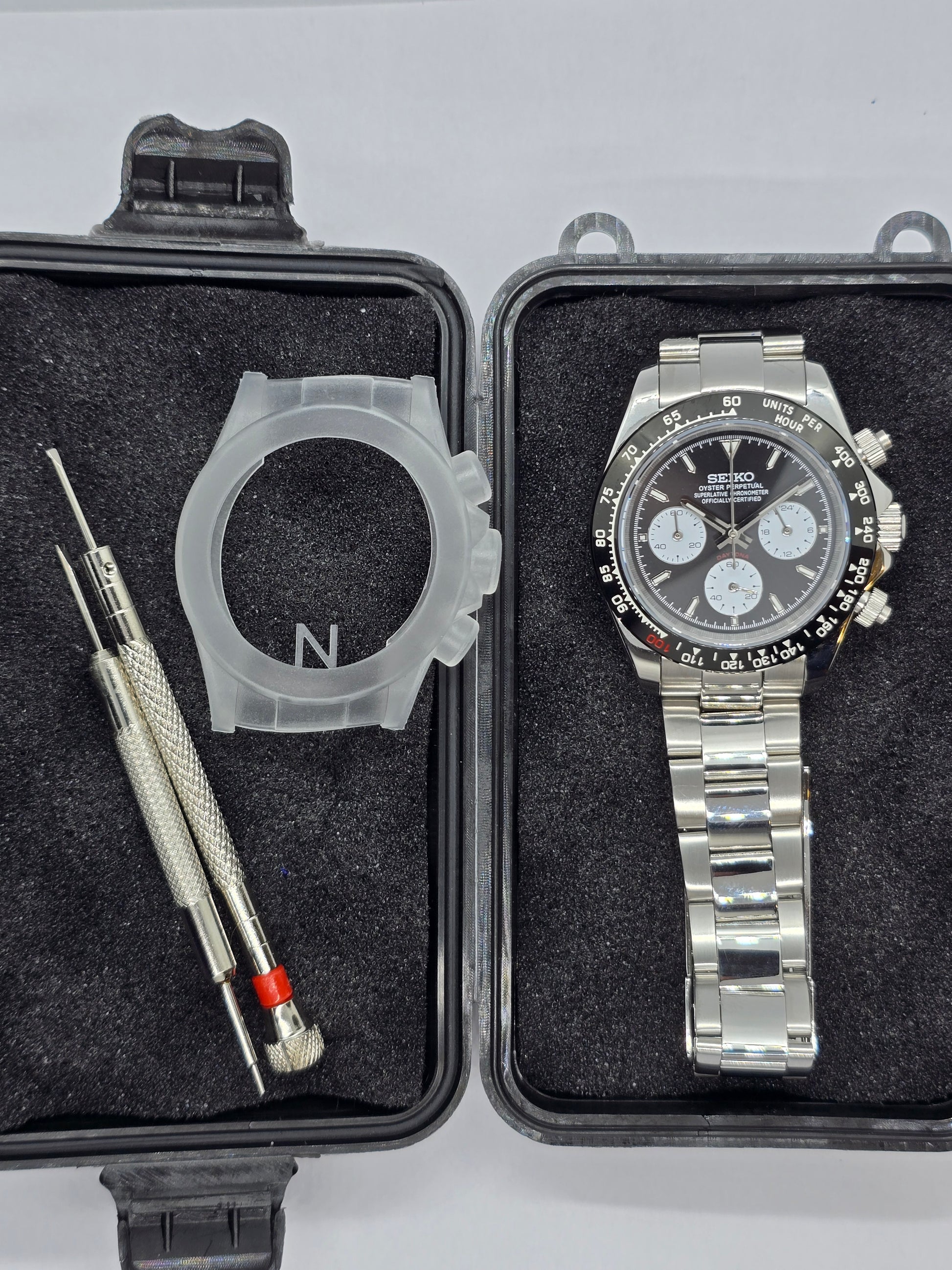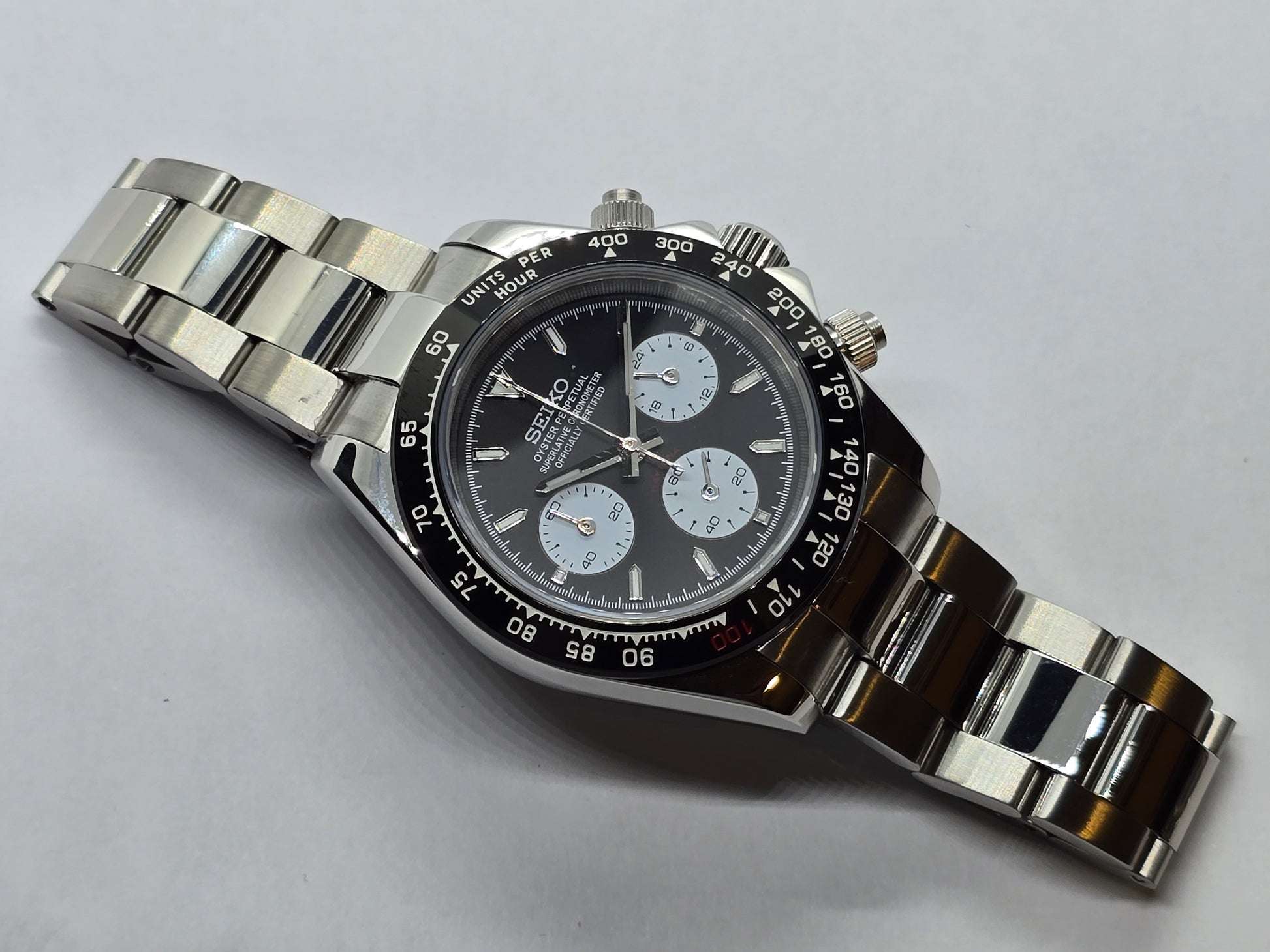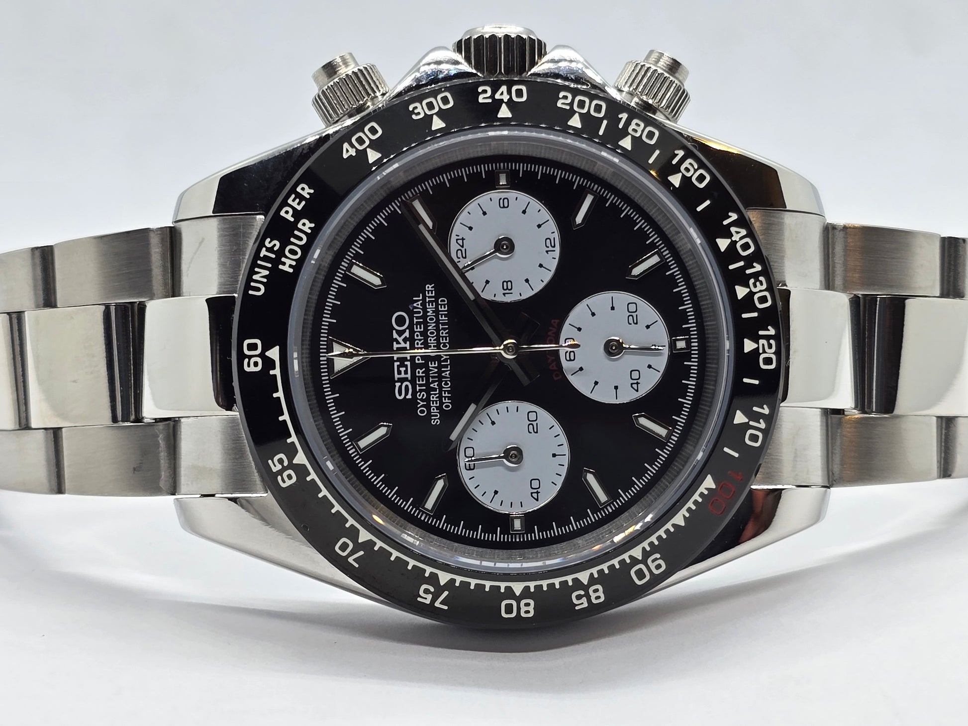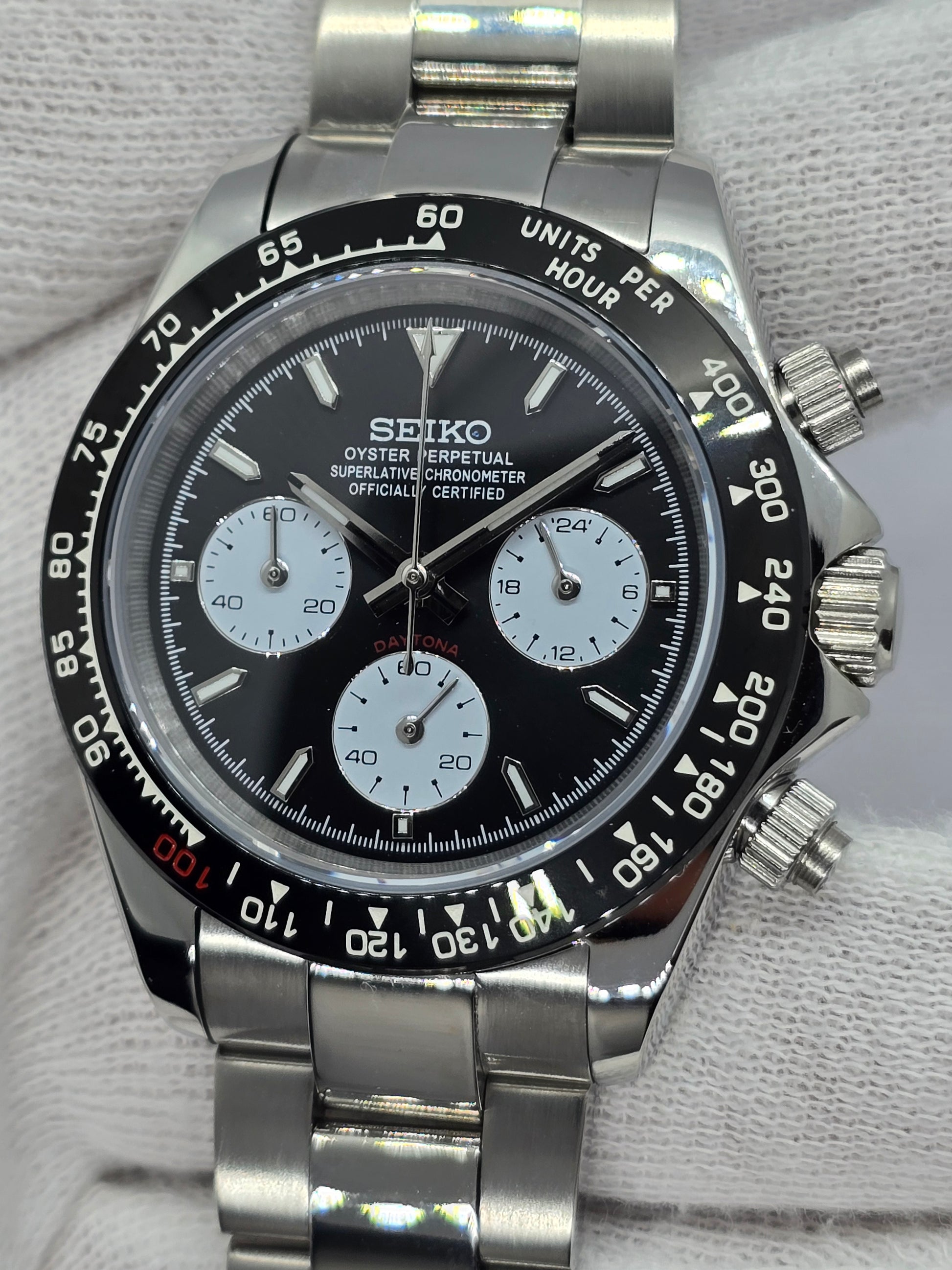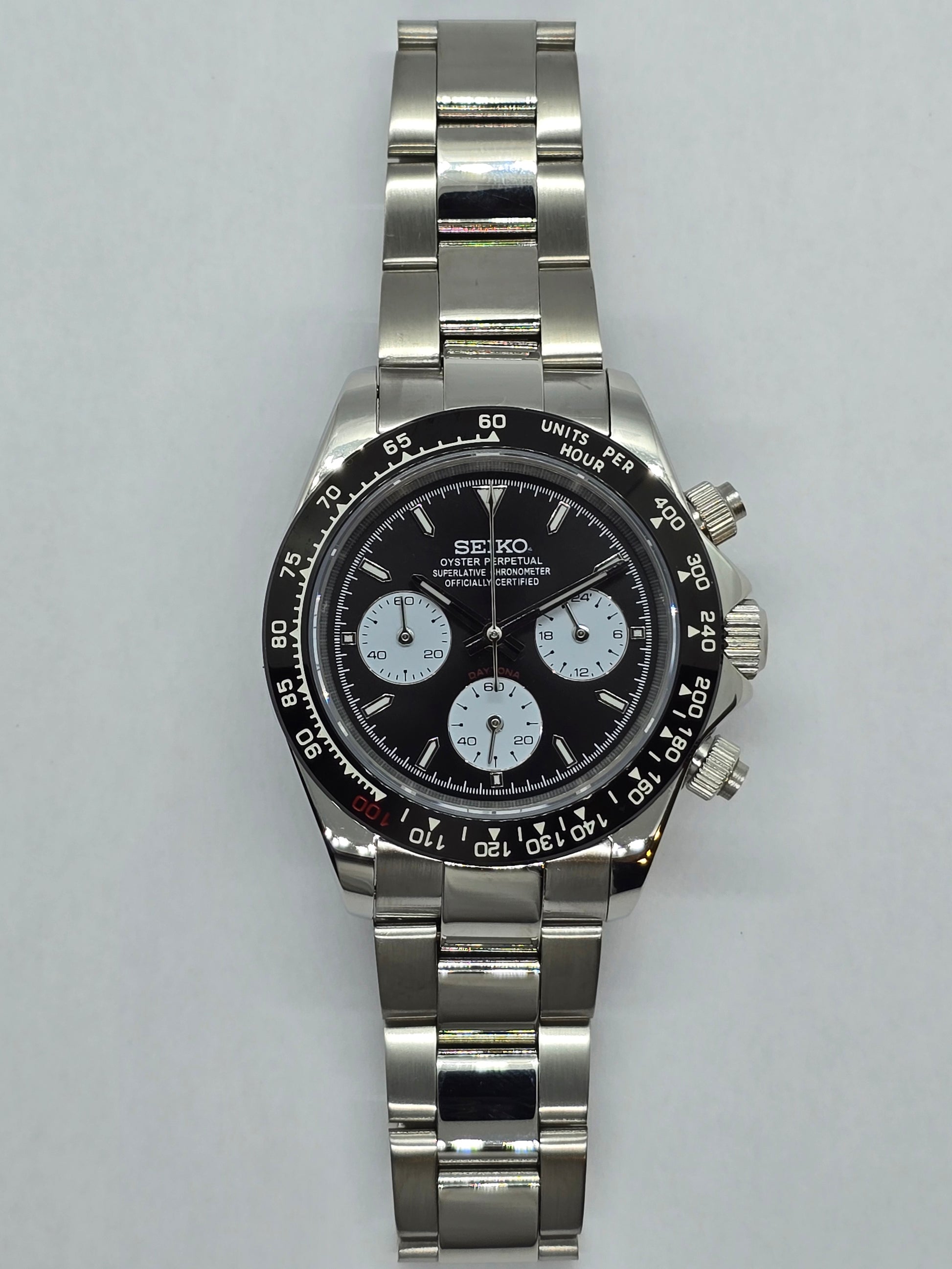 Orologio personalizzato Seiko Mod Daytona Le Mans cronografo nero.