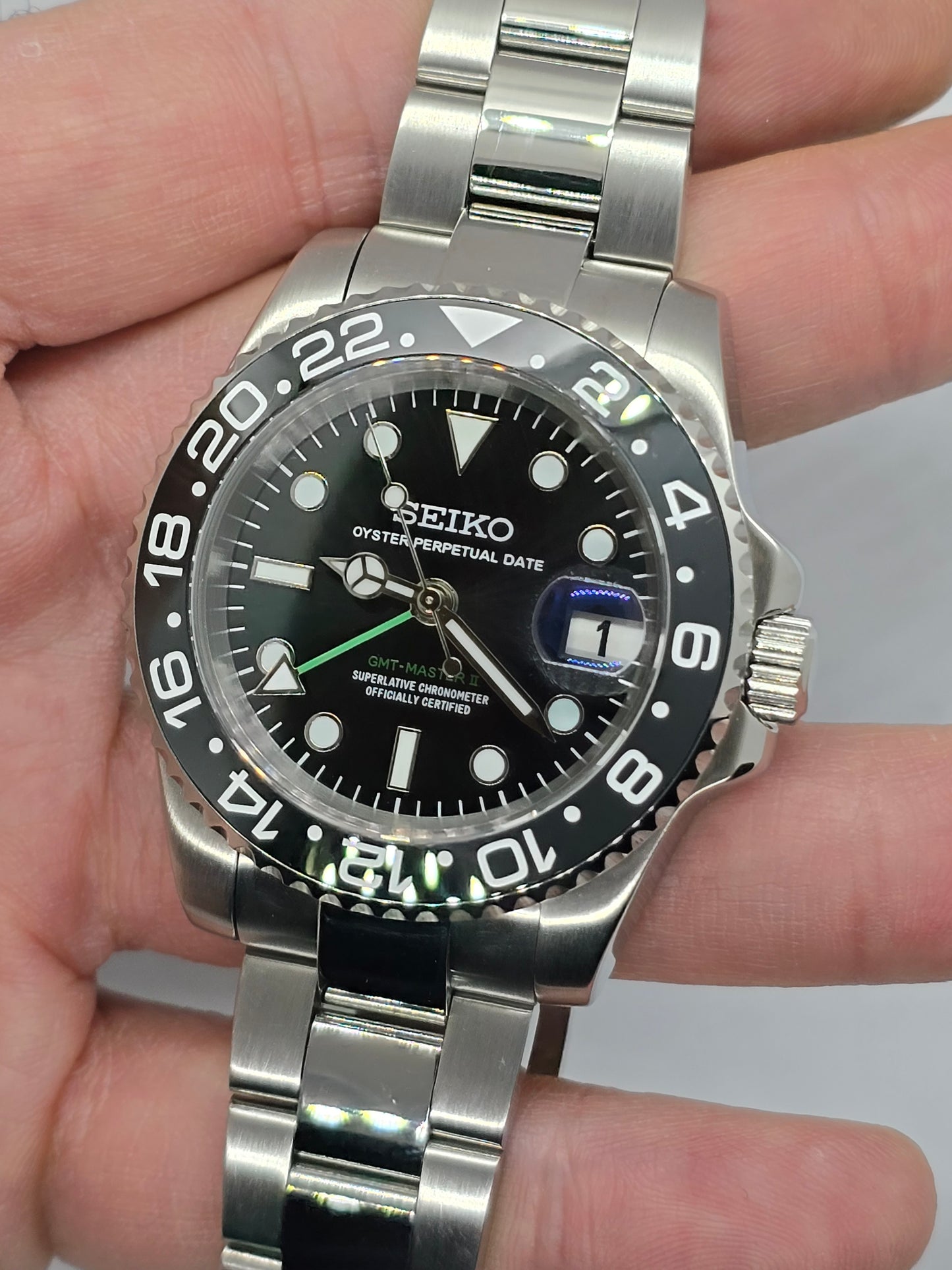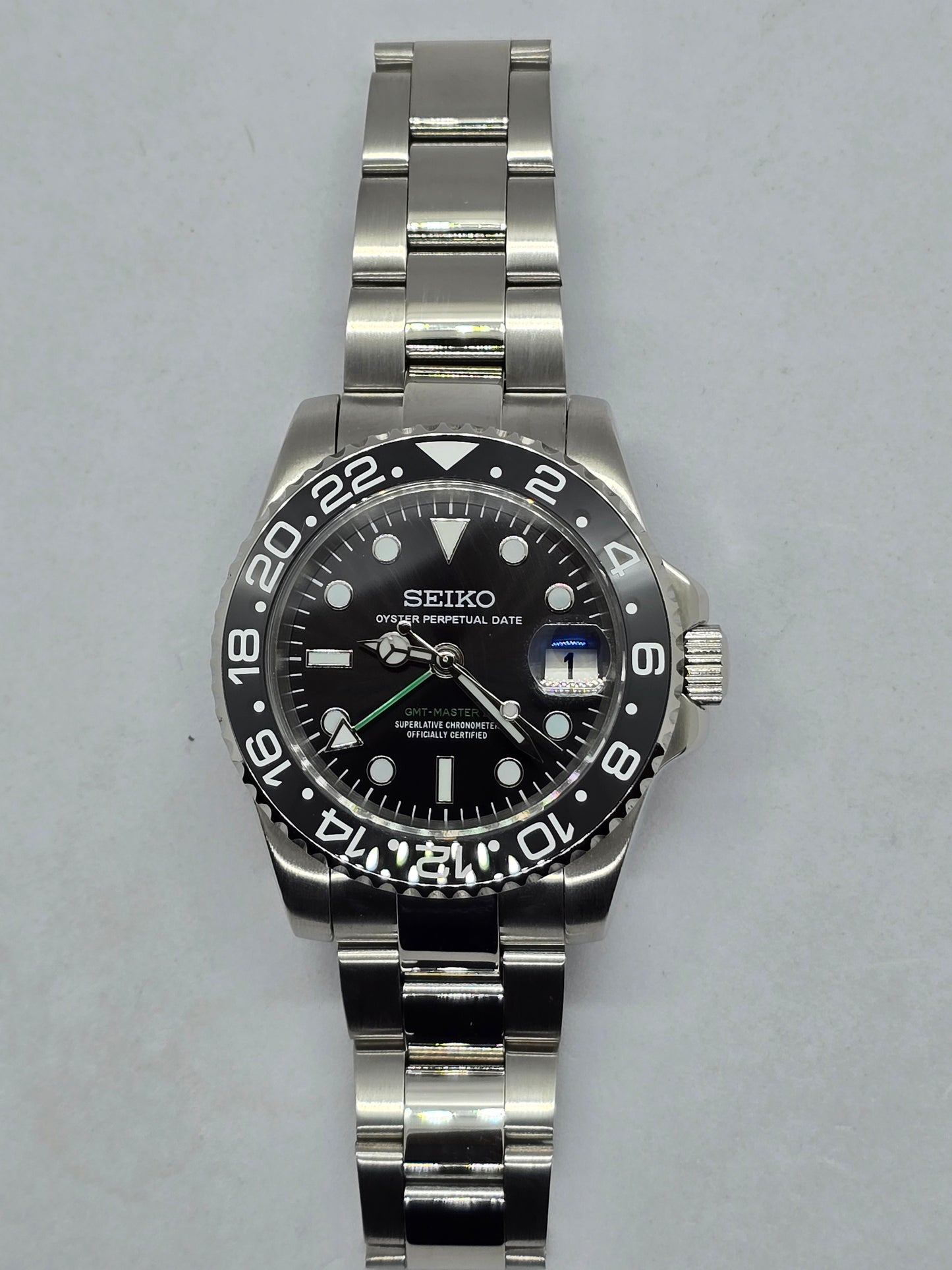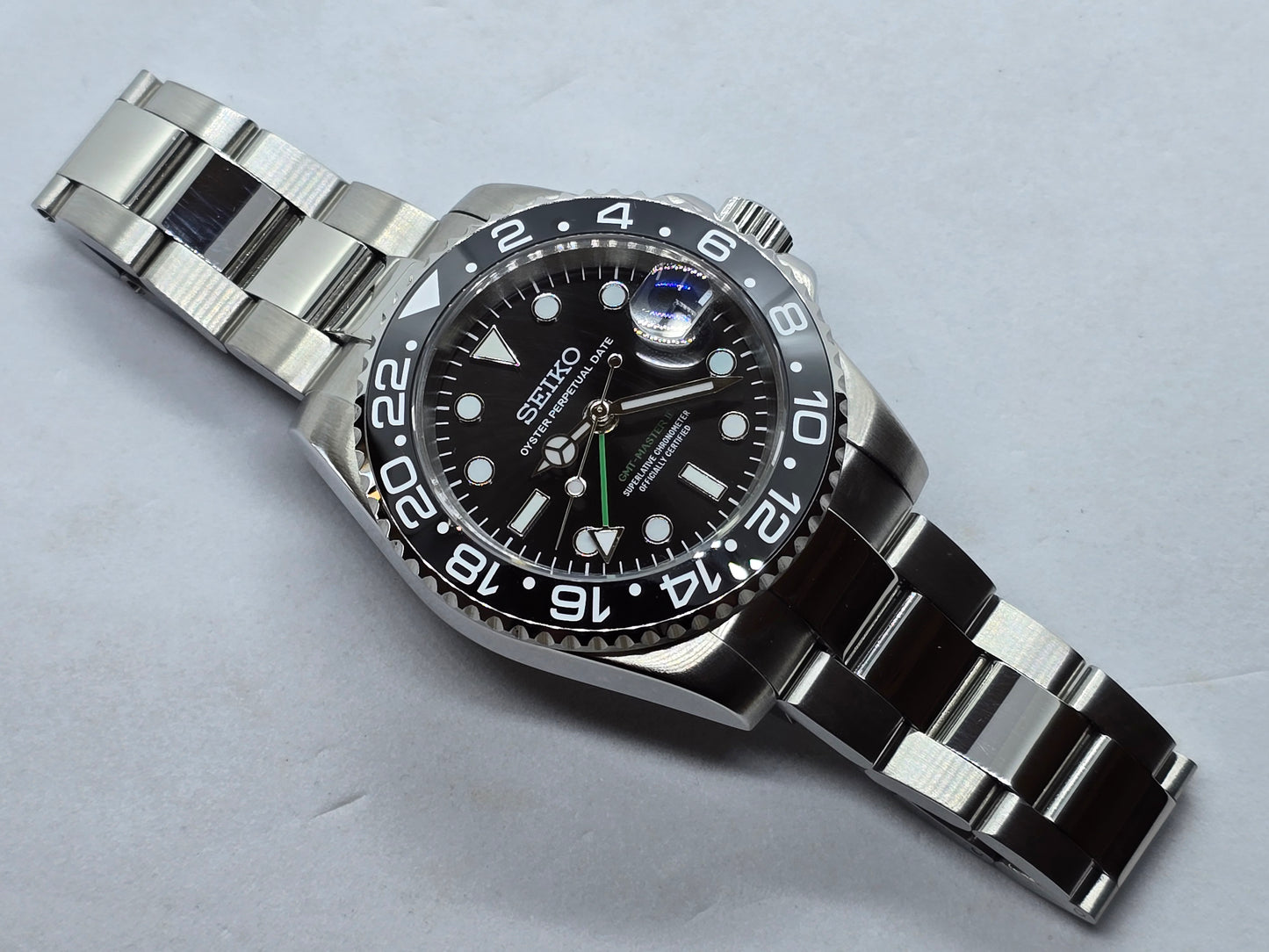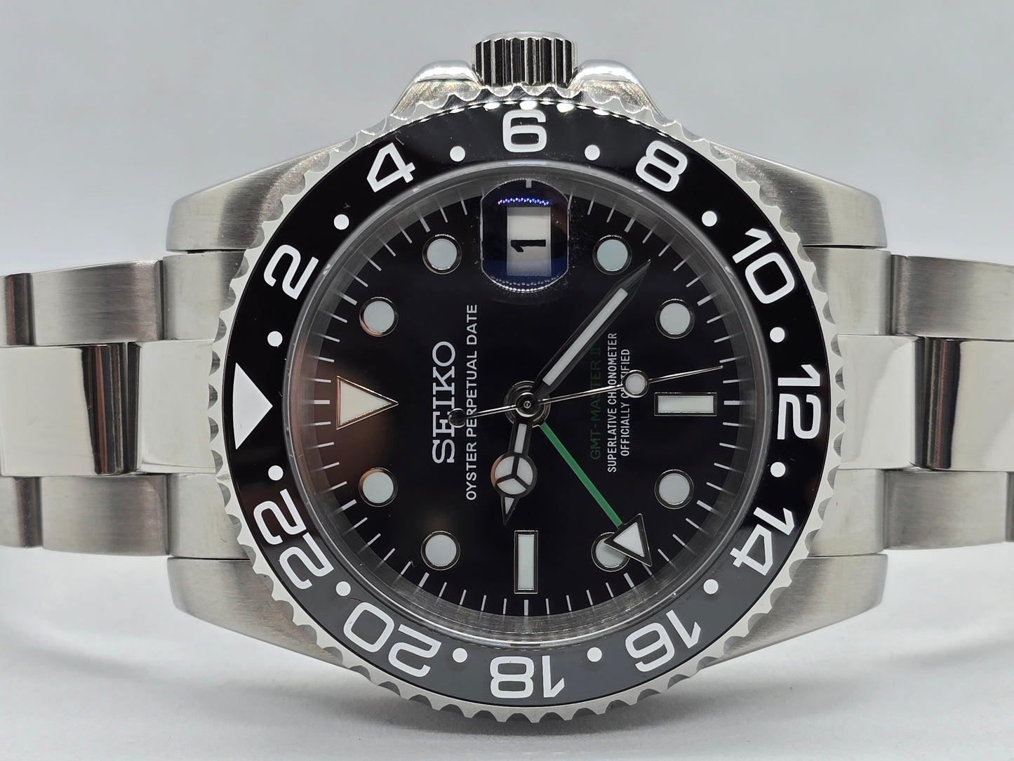 Orologio personalizzato Seiko Mod Gmt nero Nh34 Oyster