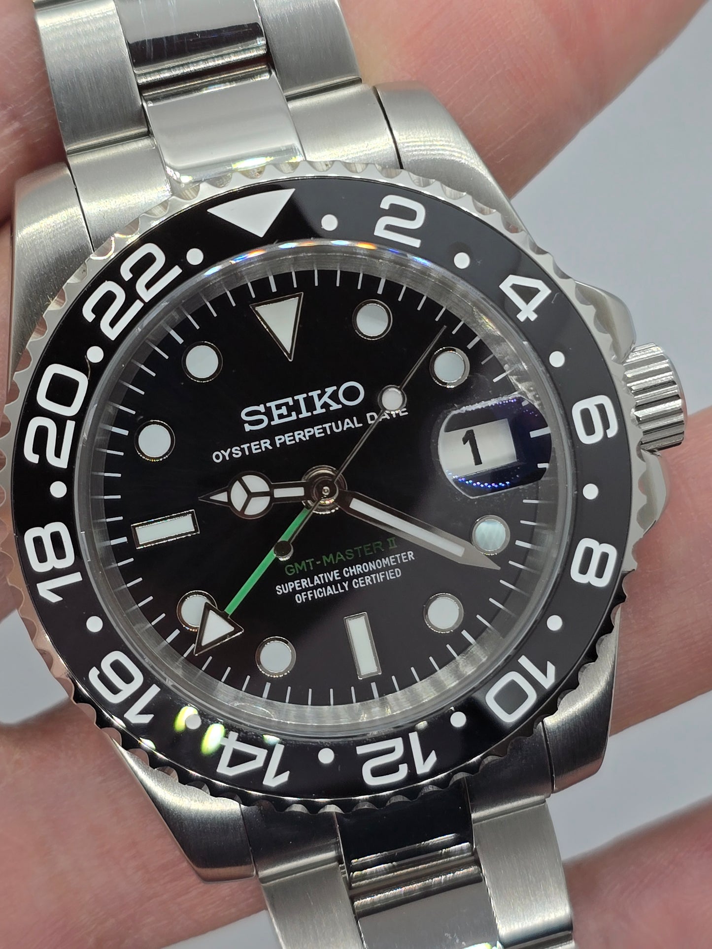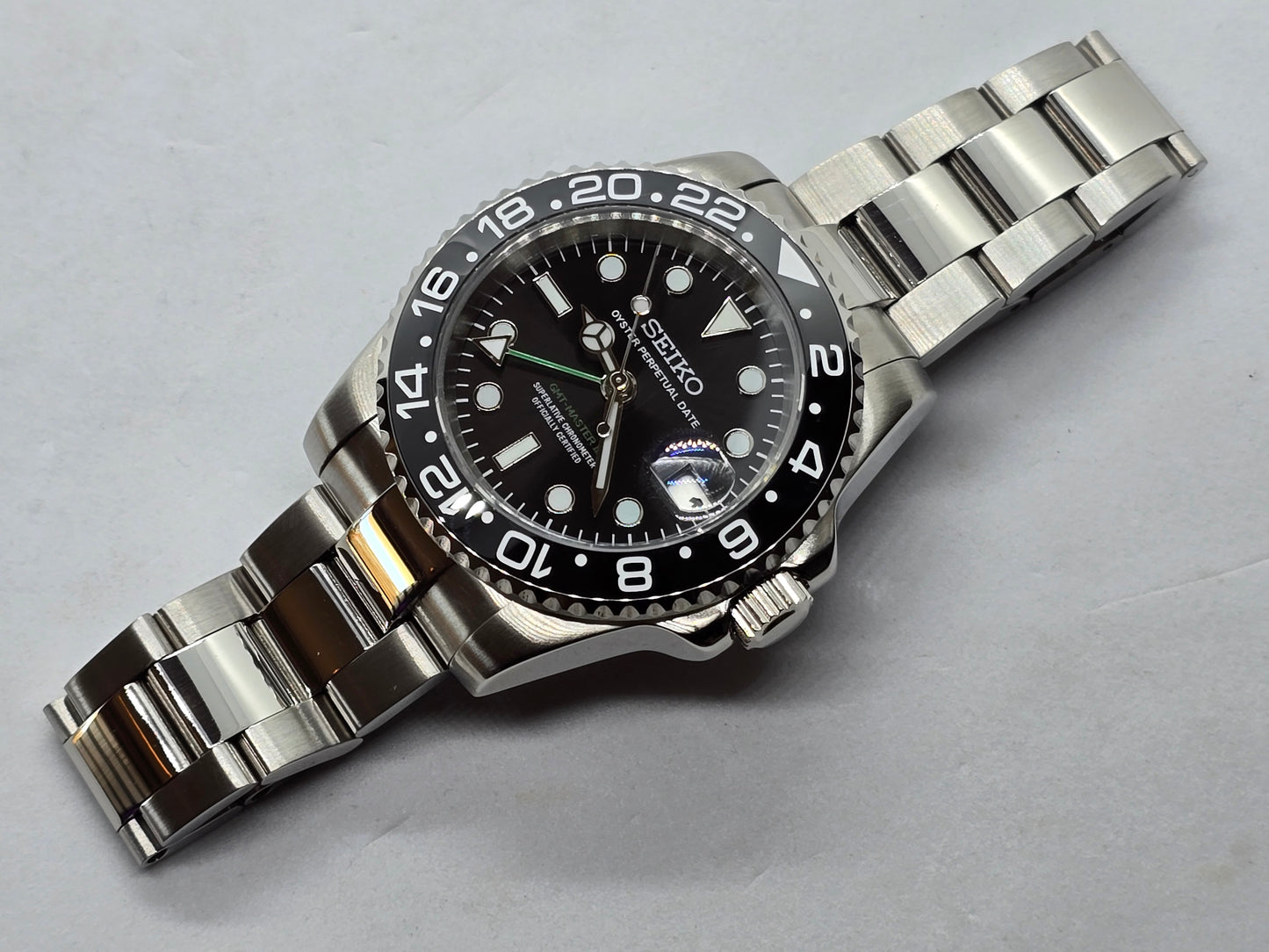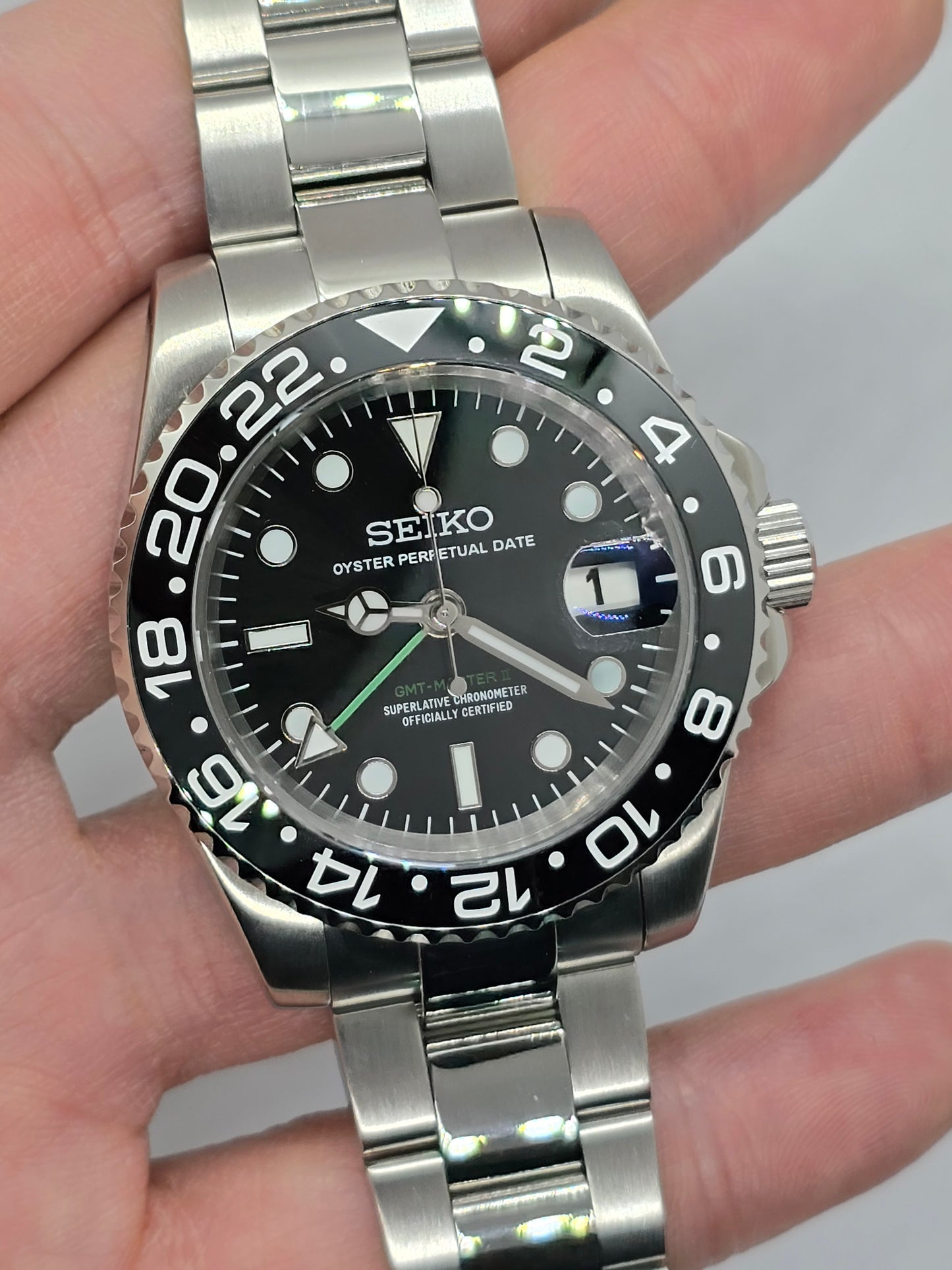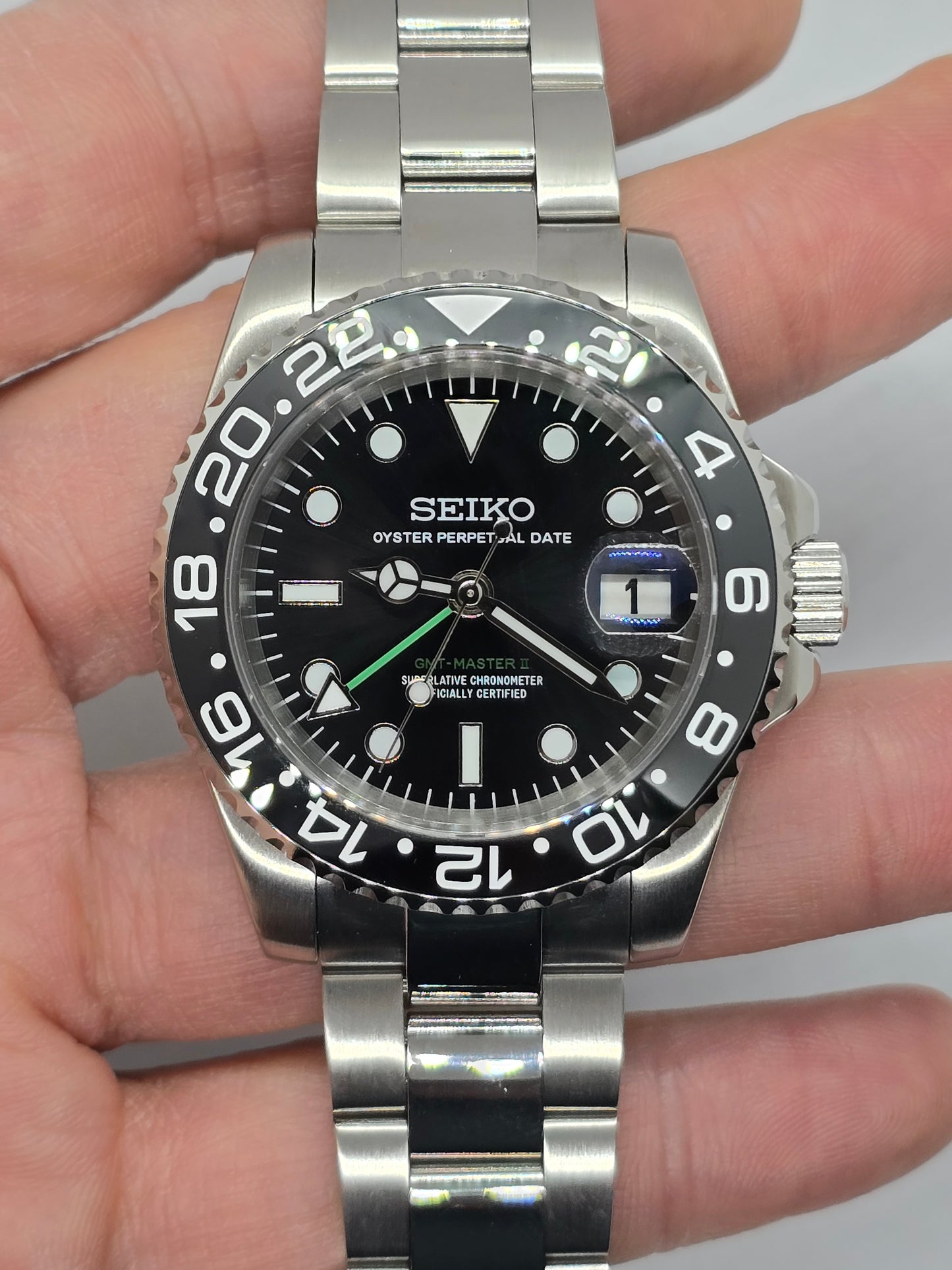 Orologio personalizzato Seiko Mod Gmt nero Nh34 Oyster