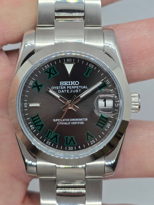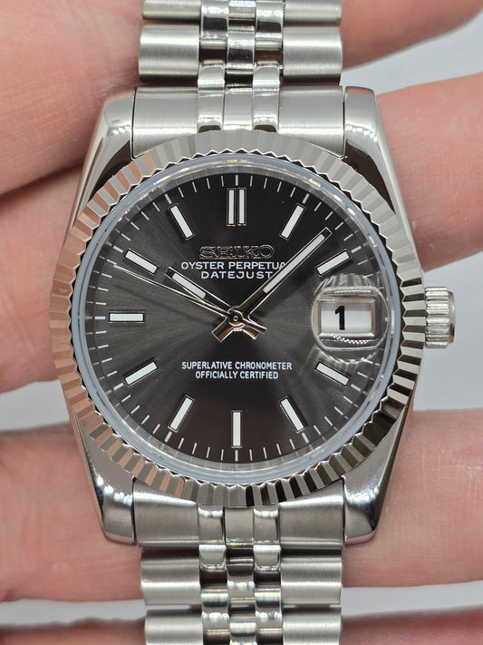 Seiko Mod Datejust nero Nh35 automatico 39mm vetro zaffiro