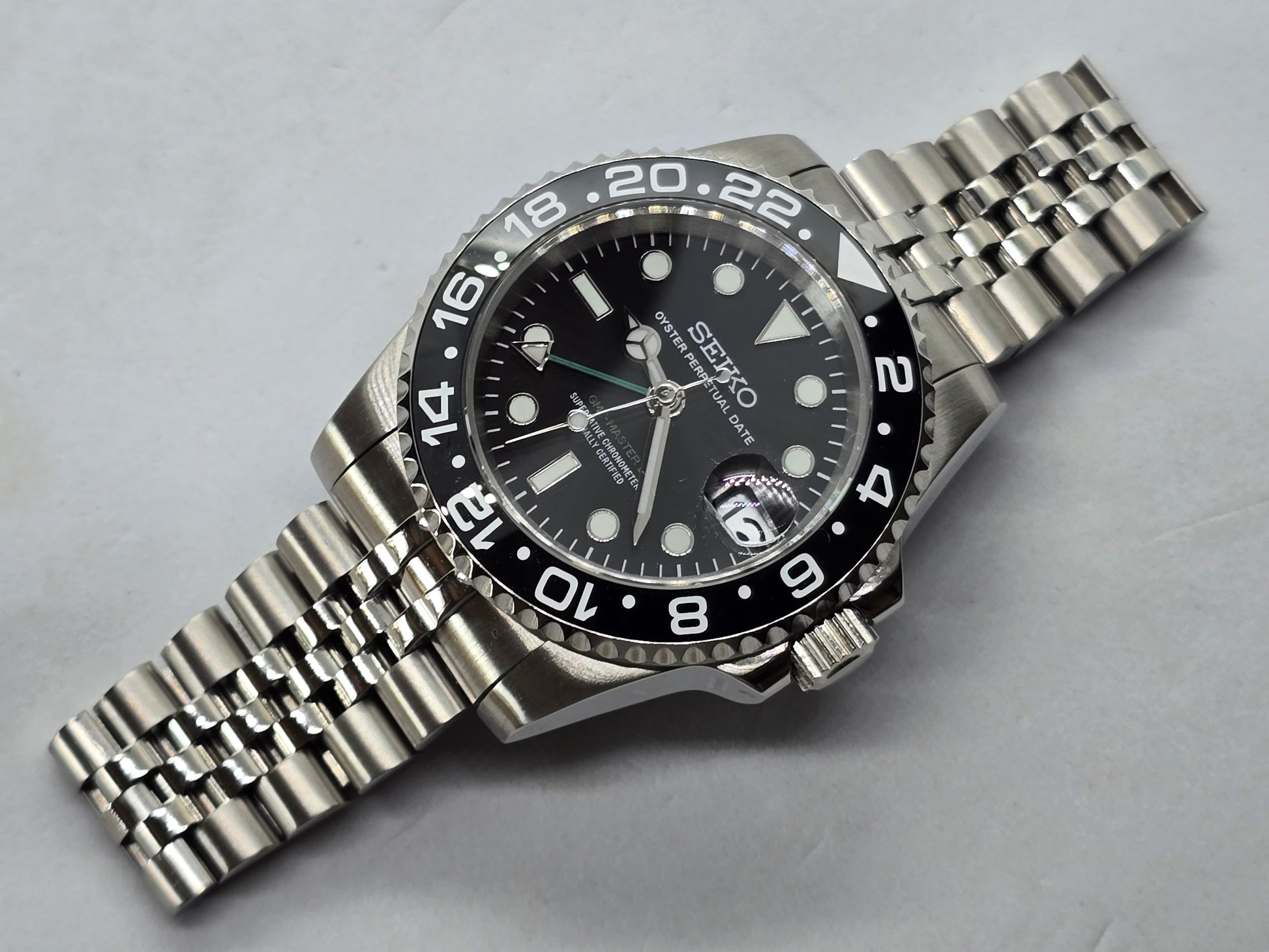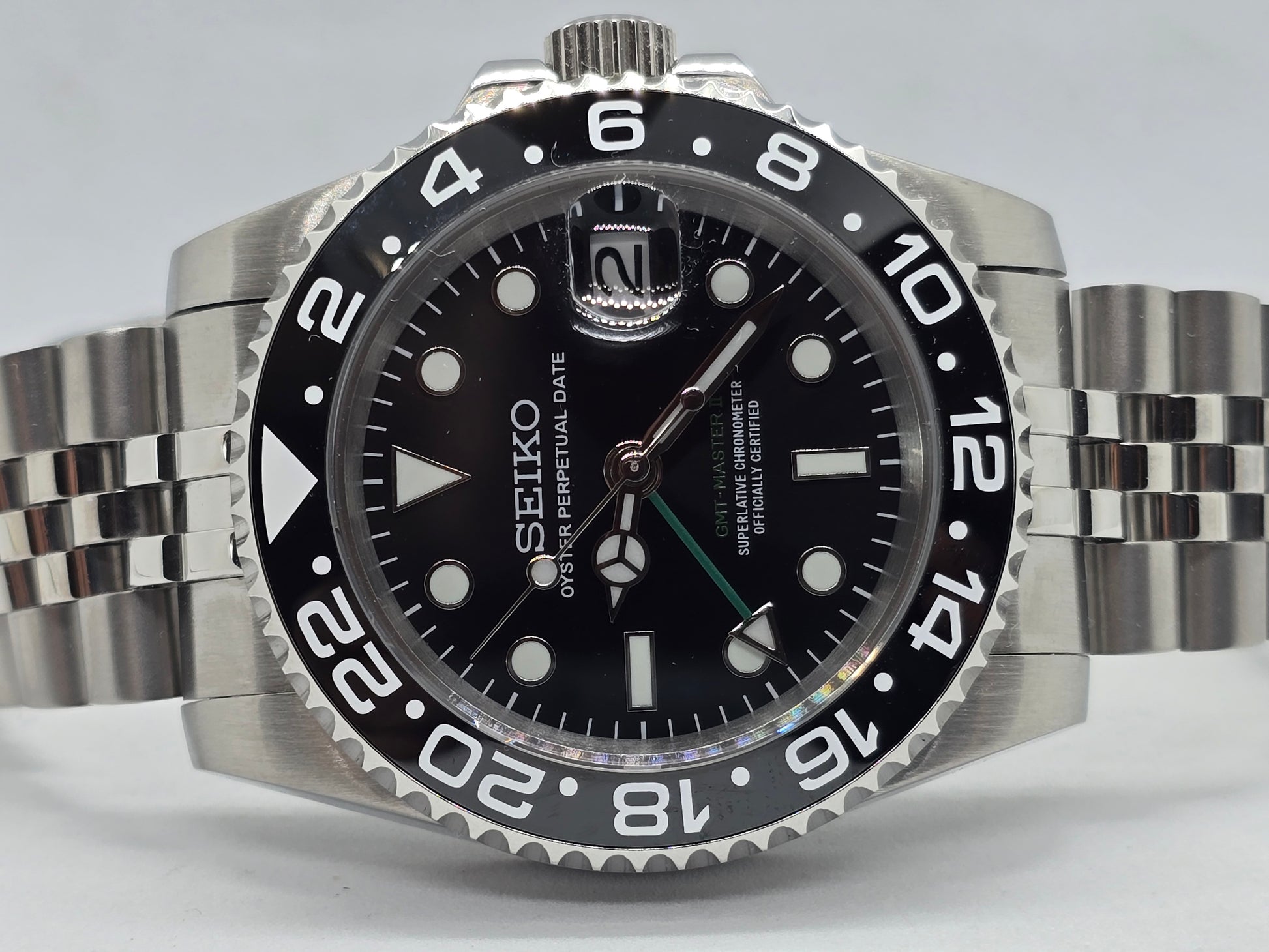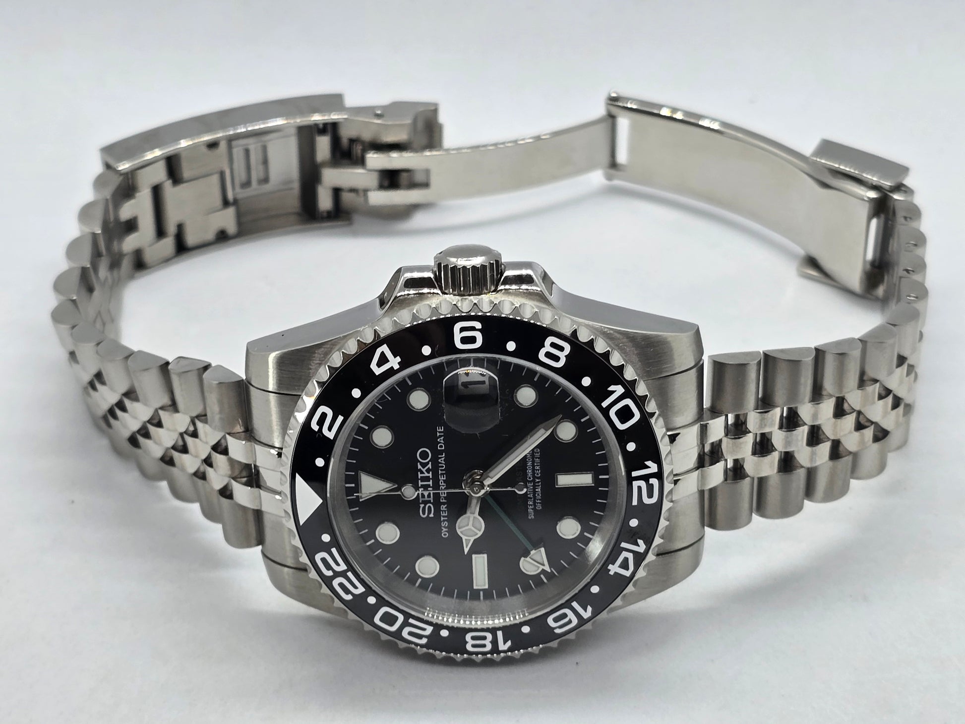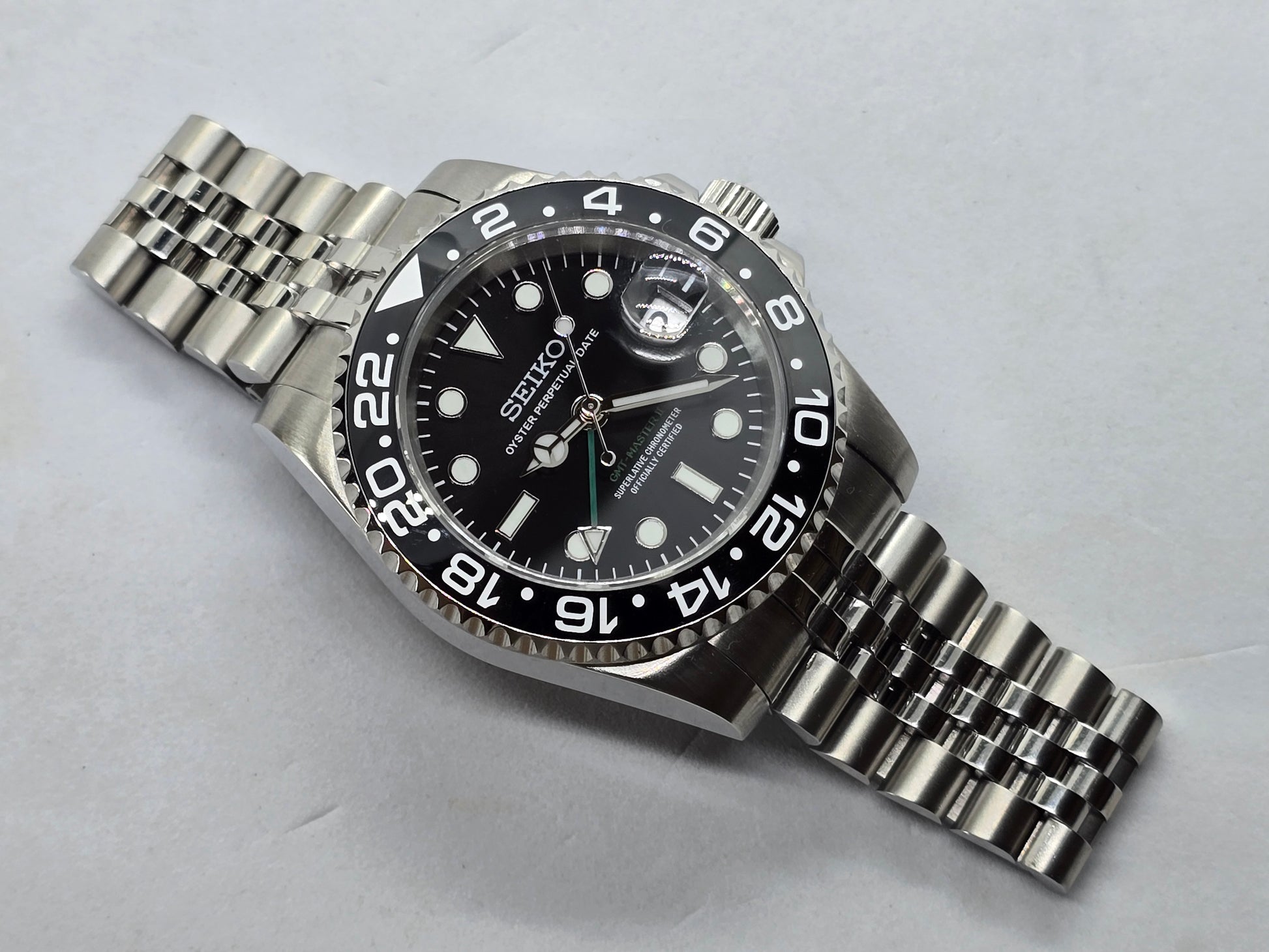 Orologio personalizzato Seiko Mod Gmt nero Nh34 Oyster
